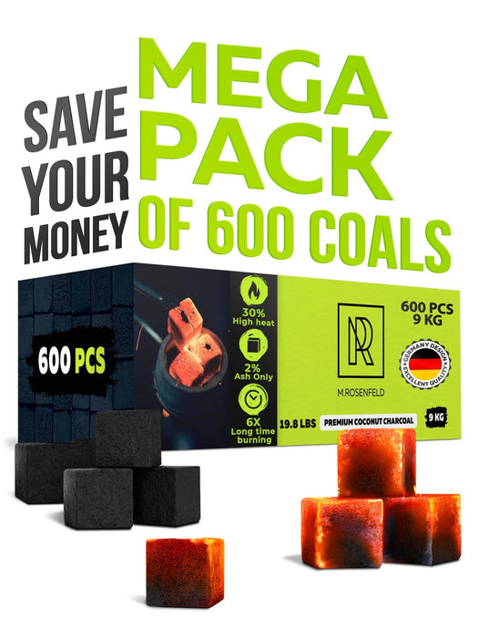 600 pcs Hookah Charcoal Hookah Coals for Hookah Coconut 25mm Cubes – XXXL Pack 600 pcs & 9 KG (19.8 lbs) – Premium Quality 25mm (1x1x1 in) – 100% Natural Coconut Charcoal Hookah Cubes – NOT Quick Ligh