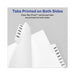 Rip Proof™ reinforced tabs printed on both sides with exhibit letter. Easy-to-read Helvetica bold type stands out. Unpunched for flexibility in binding.