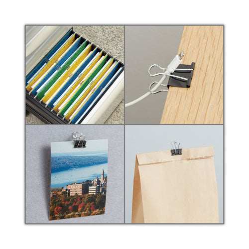 Ultra-efficient binder clips feature handles that can be hung, folded flat against clipped material, or removed for permanent binding. Efficient triangular design provides optimum strength and compression.