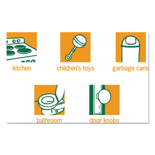 Pre-moistened wipes clean and disinfect in one easy step. Kills 99.99% of germs botanically. Effective against cold and flu viruses. Deodorizes and effectively controls odors using essential oils. No rinsing or wiping is required, even on food contact surfaces.