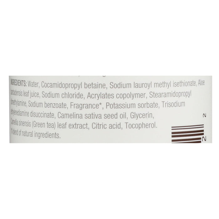 ingredients : water;cocamidopropyl betaine;sodium lauroyl methyl isethionate;aloe barbadensis leaf juice;sodium chloride;acrylates copolymer;stearamidopropyl dimethylamine;sodium benzoate;fragrance;potassium sorbate;trisodium ethylenediamine disuccinate;camelina sativa seed oil;glycerin;camellia sinensis;green tea;leaf extract;citric acid;tocopherol