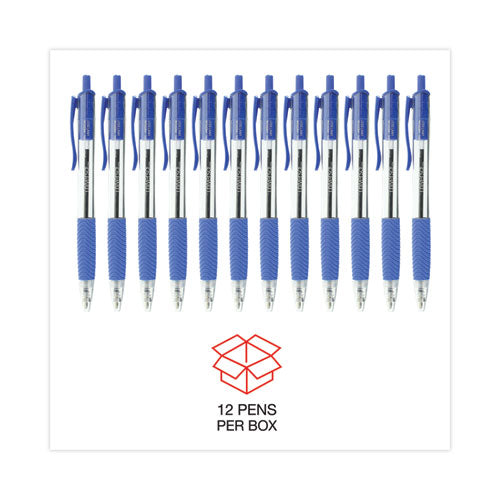 Comfort Grip Ballpoint Pen, Retractable, Medium 1 Mm, Blue Ink, Clear/blue Barrel, Dozen.