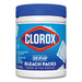 Clorox Zero Splash Bleach Packs bring you the Clorox Bleach clean in a convenient pre-measured solid pack for easy dosing. The solid bleach packs allow you to enjoy whiter laundry and cleaner surfaces without the splash and spills. Clorox Zero Splash Bleach Packs are a convenient solution for cleaning fabrics, toilets, sinks and hard, nonporous surfaces. These specially formulated packs activate upon contact with water for added control. Simply throw a Bleach Pack in the washer drum or drop a pack into a bucket, sink or toilet and stir to dissolve. The packs will dissolve fully in the wash. These compact bleach pods make it easy to grab a pack or two of these and go. No mess, just fresh clean clothes. Clorox Zero Splash Bleach Packs let you clean with the same trusted Clorox power without worrying about bleach spills, splatters or other laundry mishaps.