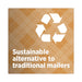 Scotch™ Curbside Recyclable Padded Mailers feature a durable multi-layer paper-based construction that protects your items and are curbside recyclable. These self-sealing mailers provide similar impact protection as traditional bubble mailers and offer water resistance during shipping. While lightweight, these mailers are built to withstand rough handling.