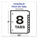 Customizable Print-on Dividers, 3-hole Punched, 8-tab, 11 X 8.5, White, 1 Set.