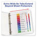 Organized documentation makes a business run like a well-oiled machine. These Ready Index Table of Contents Dividers help you stay organized so you can locate documents quickly and efficiently. They feature preprinted multicolor tabs that can be displayed in either landscape or portrait format. Using free templates from Avery Design & Print you can customize the included table of contents page and print in minutes. Organization and efficiency-makes life better for your business. For laser and inkjet printers.