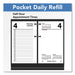 Half-hour appointment times. One day per two-page spread with a unique design; Saturday/Sunday combined. Past, current and future months reference. Loose-leaf, two-hole punched pages for E17-style calendar bases.