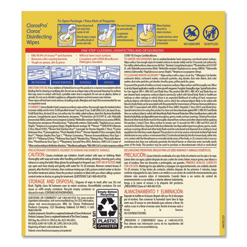 Clorox Disinfecting Wipes clean, disinfect and remove allergens leaving behind a pleasant scent. Disinfecting Wipes clean and disinfect with antibacterial power that kills 99.9% of viruses and bacteria that can live on surfaces, including COVID-19 Virus, staph, E. coli, MRSA, salmonella, strep and Kleb on hard, nonporous surfaces when used as directed. These all-purpose disposable wipes remove common allergens, germs and messes on surfaces like kitchen counters, bathroom surfaces and more. Disinfecting Wipes are safe to use on a variety of surfaces including non-food-contact surfaces in the home, office, daycares, schools, hotels, restaurants, and more. Use as directed. Allow product to air dry.