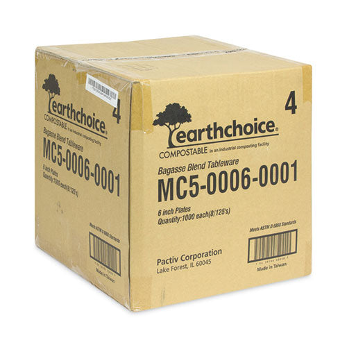 Earthchoice Compostable Fiber-blend Bagasse Dinnerware, Plate, 6" Dia, Natural, 1,000/carton.