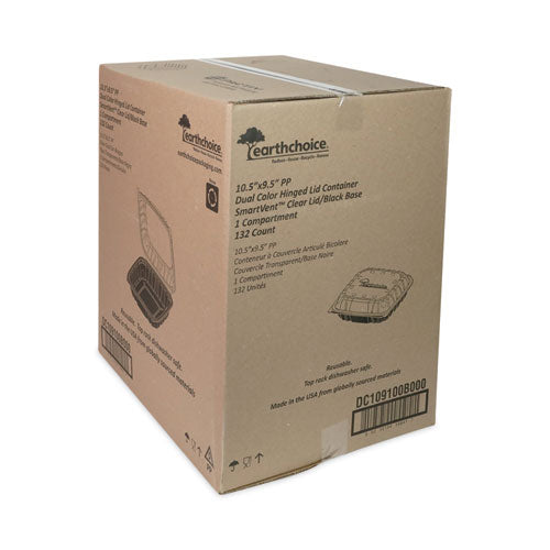 Earthchoice Vented Dual Color Microwavable Hinged Lid Container,1-compartment 66oz, 10.5x9.5x3, Black/clear, Plastic, 132/ct