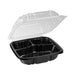 Earthchoice Vented Dual Color Microwavable Hinged Lid Container,3-compartment, 21oz, 8.5x8.5x3, Black/clear, Plastic, 150/ct