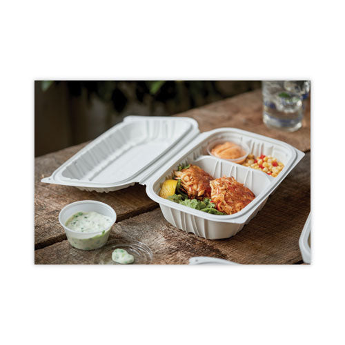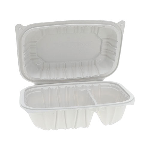 Earthchoice Vented Microwavable Mfpp Hinged Lid Container,2-compartment, 9 X 6 X 3.1, White, Plastic, 170/carton