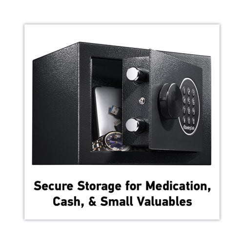 Electronic Security Safe, 0.14 Cu Ft, 9w X 6.6d X 6.6h, Black.
