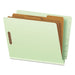End Tab Classification Folders, 2.5" Expansion, 2 Dividers, 6 Fasteners, Letter Size, Pale Green Exterior, 10/box.
