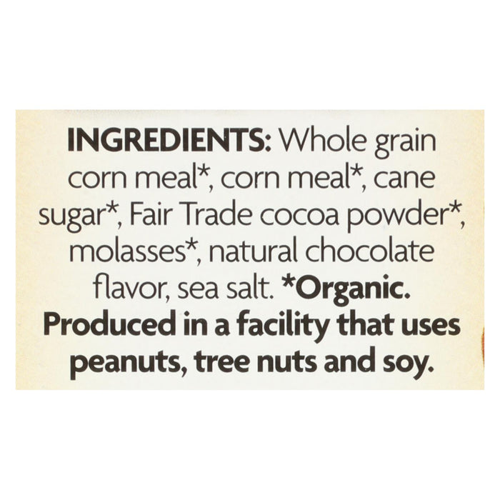 ingredients : whole grain corn meal;corn meal;cane sugar;fair trade cocoa powder;molasses;natural chocolate flavor;sea salt