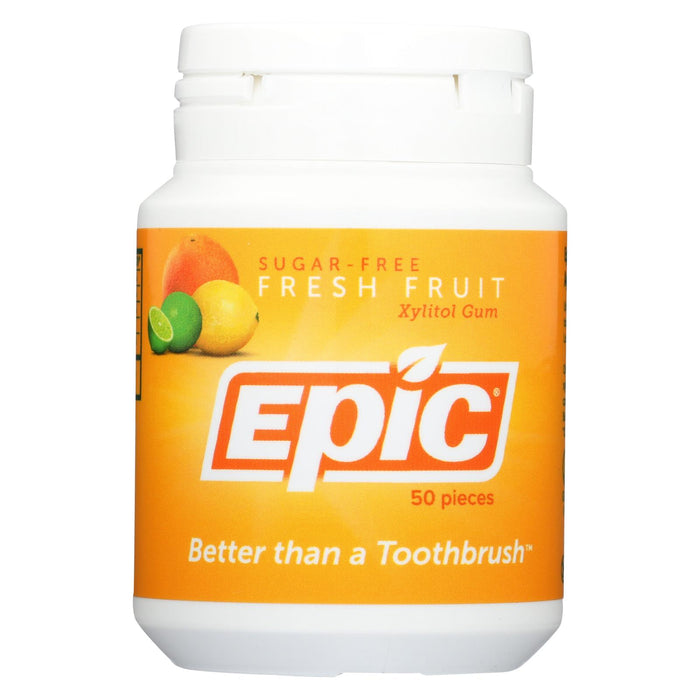 Epic xylitol gum, fresh fruit is a naturally based gum specially designed to promote overall oral health. Made with naturally derived ingredients, this gum is free of unnatural and unnecessary additives. This product is gluten-free and sugar free. Each container of epic xylitol gum, fresh fruit contains 50 pieces.