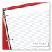 Three-hole punched for use in standard three-ring binders. Red margin rule.