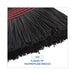 Convenient size janitorial or housekeeping broom for light-duty sweeping. Stiff, tightly packed bristles get into nooks and crannies while pushing dust and debris. Composed of a wooden handle with flagged-tip, polypropylene bristles for added durability. The four rows of stitching and metal wrapping provided strength and dependability. Black color blends seamlessly into contemporary environments. Lightweight and portable for added mobility. Great for hotels, restaurants, lobbies, and household sweeping on a variety of floor types.