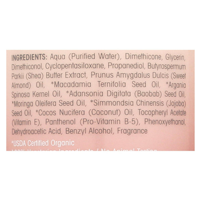 ingredients : aqua;purified water;dimethicone;glycerin;dimethiconol;cyclopentasiloxane;propanediol;butyrospermum parkii;shea;butter extract;prunus amygdalus dulcis;sweet almond;oil;macadamia ternifolia seed oil;argania spinosa kernel oil;adansonia digitata;baobab;seed oil;moringa oleifera seed oil;simmondsia chinensis;jojoba;cocos nucifera;coconut;tocopheryl acetate;vitamin e;panthenol;pro-vitamin b-5;phenoxyethanol;dehydroacetic acid;benzyl alcohol;fragrance