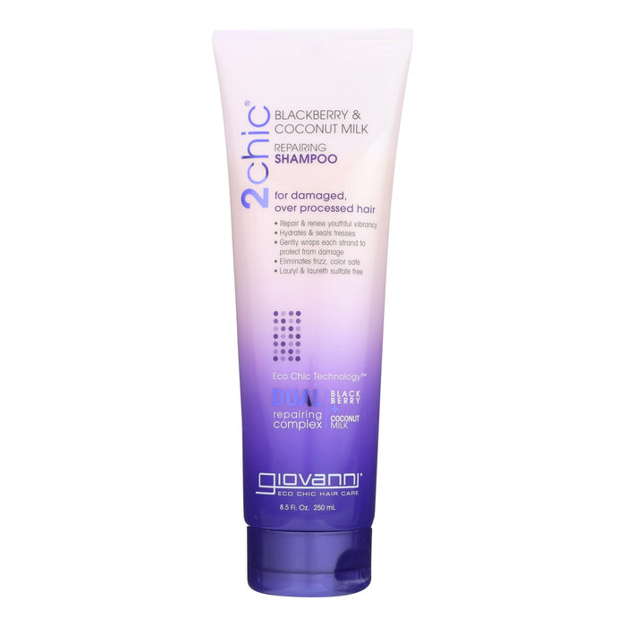 Giovanni, shampoo 2chic repairing shampoo with blackberry & coconut milk is a product you can count on. It is made without any testing on animals, and is organic and vegetarian. Formulated for damaged, over-processed hair, it doesn't contain any dyes, parabens or other harmful chemicals, including pegs. The rich, antioxidant power of blackberry and coconut will leave your hair feeling great. Each bottle contains 8.5 fl. Oz. Of shampoo.