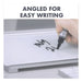 Durable glass surface will not stain or ghost, ensuring clean erasure after every use. Glass dry-erase notepad is infinitely reusable and replaces the need for scrap paper. 18" x 6" size allows notepad to fit neatly in between monitor and keyboard, maximizing available desktop space. Notepad board is slanted upward for easy reading and writing of notes and reminders. Storage drawer underneath holds sticky notes and other small accessories. Rail across the top holds dry-erase markers, and one Quartet® dry-ease marker with a cap-mounted eraser is included. Frameless design is sleek and attractive.