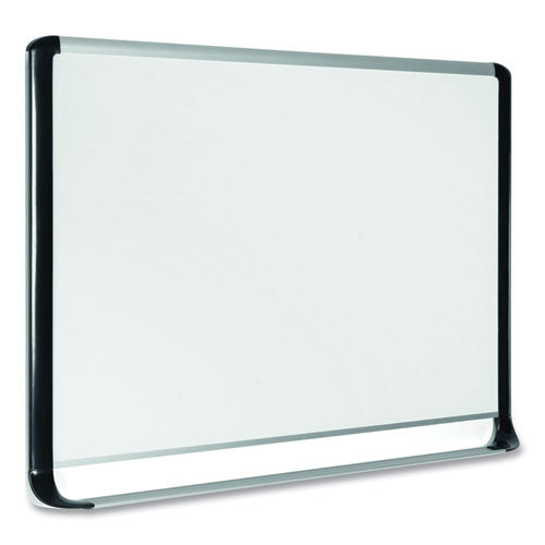 Magnetic Gold Ultra™ dry erase board allows you to post notes and messages as well as write. The lacquered steel surface is suitable for frequent use. Sleek, contemporary frame design combines aluminum and black plastic to provide a stunning yet sturdy effect that brings dry-erase into the 21st century. Full-length aluminum tray keeps what you need near to hand.