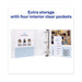 Heavy-Duty view binder with one touch EZD rings is perfect for long-term, regular use. Tear-resistant DuraHinge design is stronger and lasts longer. DuraEdge feature makes the sides and top more pliable, providing greater split resistance. Deep-textured film offers a smoother finish and features a linen pattern for a high-quality look and feel. Clear cover and spine for easy customization. Four clear, interior pockets provide extra storage space. Wider front and back panels fully cover standard dividers and sheet protectors. One touch EZD rings provide easy access and have a higher page capacity when compared to the same size round rings. Customize the cover with free, easy-to-use templates and designs at Avery Design & Print online.