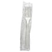 A great option for virtually any dining environment, heavyweight, wrapped cutlery items offer quick event set-up or packing for to-go meals. Individually packaged for convenience and to ensure utensils remain sanitary, even after handling. The high-quality utensils have the versatility to be used with nearly any cuisine, making them an ideal fit for takeout, concession stands, cafeterias, offices, and special events.