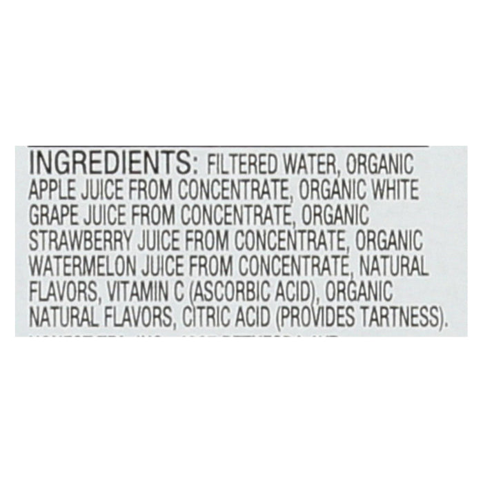 ingredients : filtered water;organic apple juice from concentrate;organic white grape juice from concentrate;organic strawberry juice from concentrate;organic watermelon juice from concentrate;natural flavors;vitamin c;ascorbic acid;organic natural flavor;citric acid;provides tartness