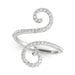 Intricately set diamonds highlight the sophisticated elegance and appeal of this open design ring featuring an eye-catching curly flourish style, this beautifully crafted in 14k white gold.
