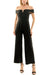 Nicole Miller Off Shoulder Ruched Front Zipper Back Solid Scuba Jumpsuit
