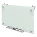 Have your very own message board, with a handy, personal-sized board that fits perfectly in cubicles, even if they have low walls. Tempered white glass surface dry-erase board is durable and will not stain or ghost; provides clean erasability. Sturdy enough to resist scratches and dents. Magnetic quality allows writing and posting of messages with dry-erase markers and rare earth magnets. Frameless board design is sleek and attractive. Two mounting hardware sets are included: adjustable brackets to hang board over cubicle walls and wall mount for traditional hanging. Writing in all colors is easily visible on the white glass board surface.