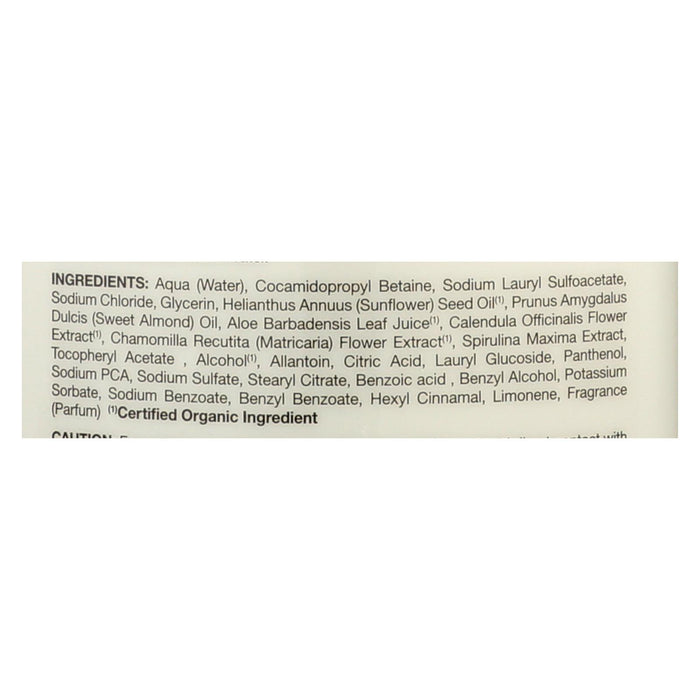 ingredients : aqua;water;cocamidopropyl betaine;sodium lauryl sulfoacetate;sodium chloride;glycerin;helianthus annuus;sunflower;seed oil;¹;prunus amygdalus dulcis;sweet almond;oil;aloe barbadensis leaf juice;calendula officinalis flower extract;chamomilla recutita;matricaria;flower extract;spirulina maxima extract;tocopheryl acetate;alcohol;allantoin;citric acid;lauryl glucoside;panthenol;sodium pca;sodium sulfate;stearyl citrate;benzoic acid;benzyl alcohol;potassium sorbate;sodium benzoate;benzyl benzoate;he