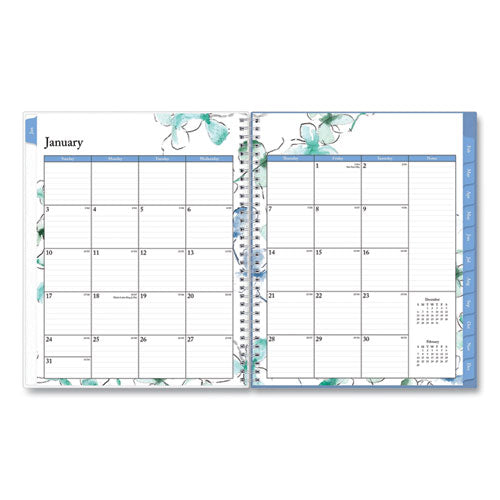 Lindley Weekly/monthly Planner, Floral Artwork, 11 X 8.5, White/blue/green Cover, 12-month (jan To Dec): 2025.