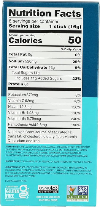 What's Inside: Our science-backed blend of pure cane sugar, dextrose, and essential electrolytes (sodium, potassium) creates the optimal ratio for rapid hydration. Enhanced with key vitamins to support energy and overall wellness.