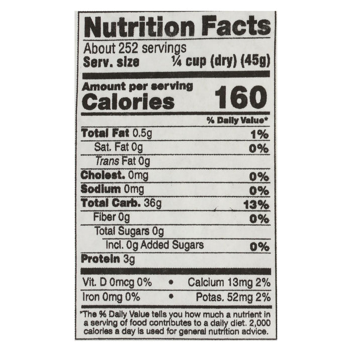 Lundberg family farms eco-farmed california white basmati rice is an aromatic variety with a fluffier, drier texture that works well in a wide range of your favorite rice dishes. Farmers use eco-friendly practices, such as crop rotation and using nitrogen-cover crops, to raise a more sustainable crop. This package contains 25 lbs. Of california white basmati rice.