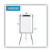 The Design Tri-Pod Presentation Easel has a traditional three leg design that delivers both great stability, and positioning in the corner of a small space or on a table top. The lacquered magnetic steel surface is ideal for frequent use, resists ghosting and staining. It also includes two magnetic extension bars that allow you to present up to three sheets of paper at one time. Equipped with a full length marker tray that cleverly secures markers, the Design Presentation Easel holds any size of easel pad with its no-pinch pad retainer. It is constructed with a telescopic height adjustable tubular frame that folds flat for easy storage.