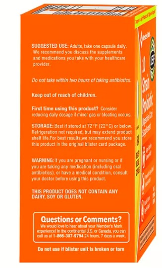 Each capsule of Member's Mark 10 Strain Probiotic provides some of the good bacteria beneficial for essential, everyday body functions.*