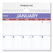 One-month view, plus a yearly calendar reference. Ruled daily blocks. Federal holidays printed in red. Wirebound with hanging loop. Full chipboard back. Printed on high-quality paper.