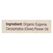 ingredients : organic eugenia caryophyllus;clove;flower oil