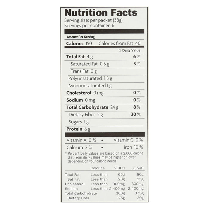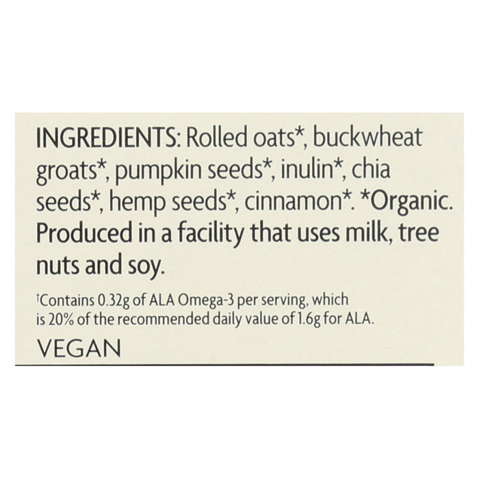 Nature's path cinnamon pumpkin seed oatmeal is made with all non-gmo project verified and certified usda organic ingredients including rolled oats, buckwheat groats and chia seeds. One box of nature's path contains six packets of gluten-free oatmeal produced without any added salt. Nature's path oatmeal is an excellent source of omega-3 fatty acids and provides 31 g. Of whole grains per serving, for a breakfast that provides long lasting energy.