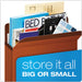 Strong construction resists rips and tears. Top, bottom, corners, main stress points and fully lined gussets double-reinforced with rip-proof tape. Straight cut tabs. Water-resistant 14 pt. red fiber; Manila lined front and back.