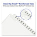 Use these dividers to organize index briefs, legal exhibits, mortgage documentation files and more. The crisp and clean white paper stock dividers give files a professional appearance. The durable Rip Proof™ reinforced tabs are preprinted on both sides so information can be located easily. The unpunched binding edges mean these indexes can fit practically any binding system.