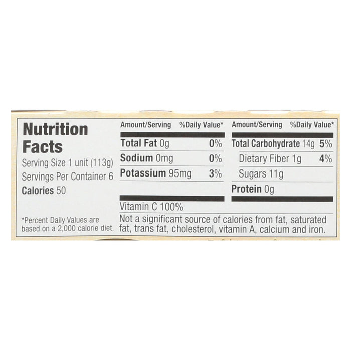 Santa cruz 4 oz. Organic apple sauce is a usda organic certified food product. This gluten-free apple sauce comes in six 4 oz. Cups and is produced with certified renewable energy. Non-gmo project verified, it is also fat-free and contains 0 mg. Of sodium, 50 calories and 14 g. Of carbohydrates per serving.