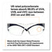3M® Pressure Diffusion Technology allows temples to naturally adjust to individual head sizes, eliminating the need to stock multiple frame sizes at worksites. Secure, snug fit keeps eyewear in place without slippage even when the wearer is in motion. Anti-fog coating helps keep lenses free of moisture in hot and humid conditions. Polycarbonate lenses absorb 99.9% UVA and UVB up to 380 nm.