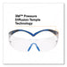3M® Pressure Diffusion Technology allows temples to naturally adjust to individual head sizes, eliminating the need to stock multiple frame sizes at worksites. Secure, snug fit keeps eyewear in place without slippage even when the wearer is in motion. Anti-fog coating helps keep lenses free of moisture in hot and humid conditions. Polycarbonate lenses absorb 99.9% UVA and UVB up to 380 nm.