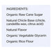 ingredients : organic raw cane sugar natural chicle base (chicle, candelilla wax, citrus acid) natural flavor organic vegetable glycerin organic rice flour