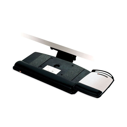 Package Includes: Keyboard Tray with 23" Track; Gel-Filled Wrist Rest; 3M™ Precise™ Mouse Pad with Battery Saving Design