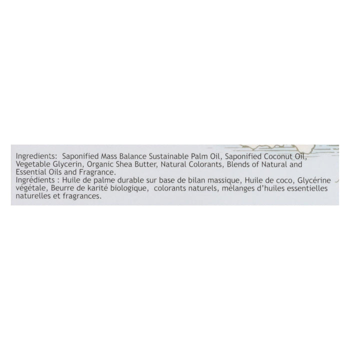 ingredients : saponified mass balance sustainable palm oil;saponified coconut oil;vegetable glycerin;organic shea butter;natural colorants;blends of natural and essential oils and fragrance