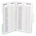 Find critical files fast with SuperTab® pressboard fastener folders. Get nearly double the labeling area of a standard fastener folder, so you can write larger or use more lines of description. Protect your documents and fingers with SafeSHIELD® coated fastener technology, the ultimate solution to fastener issues, including paper tears, finger cuts, and excessive fastener crinkling. Fasteners in positions 1 and 3. Sturdy tear resistant gusset expands to hold up to 2" of material. Made from heavy-duty pressboard material to handle large, bulky files that get plenty of use.